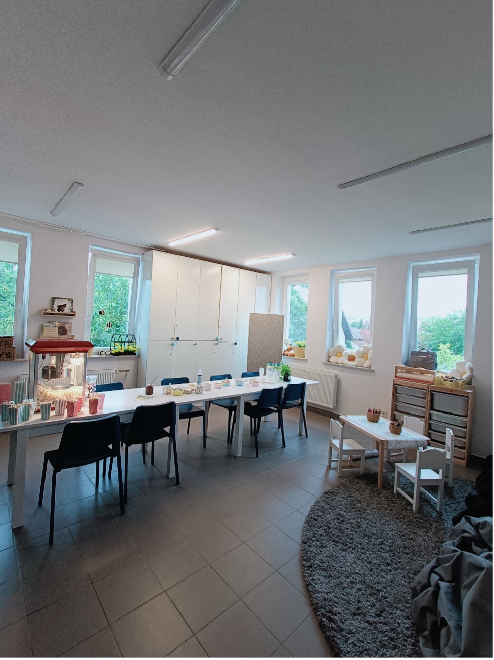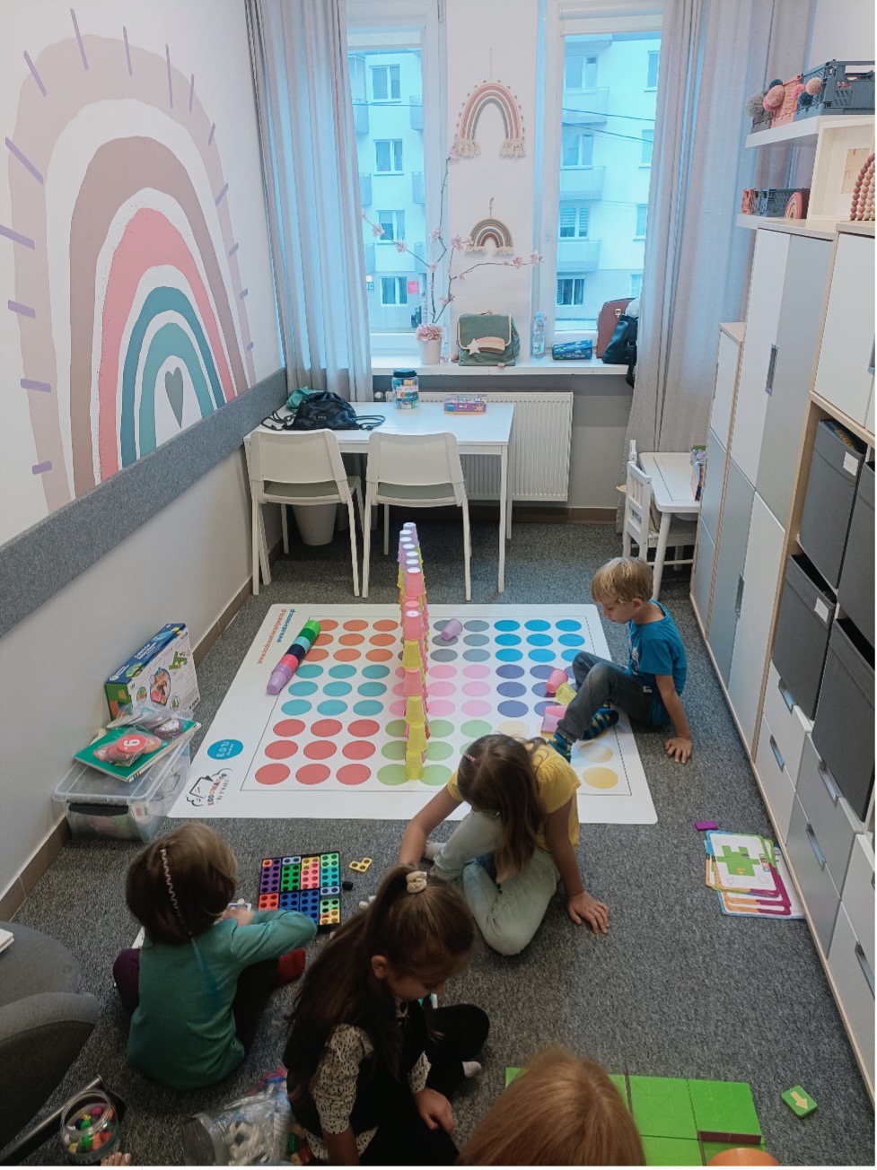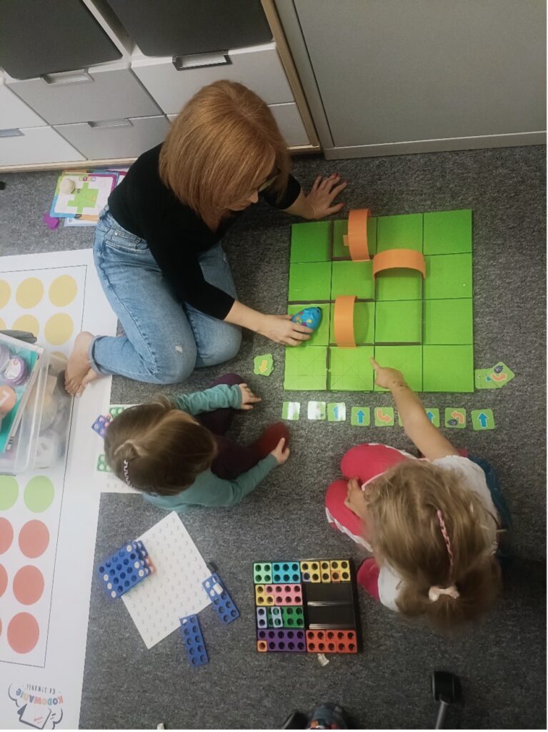 🔹 malować, kleić, lepić i kodować na dywanie,